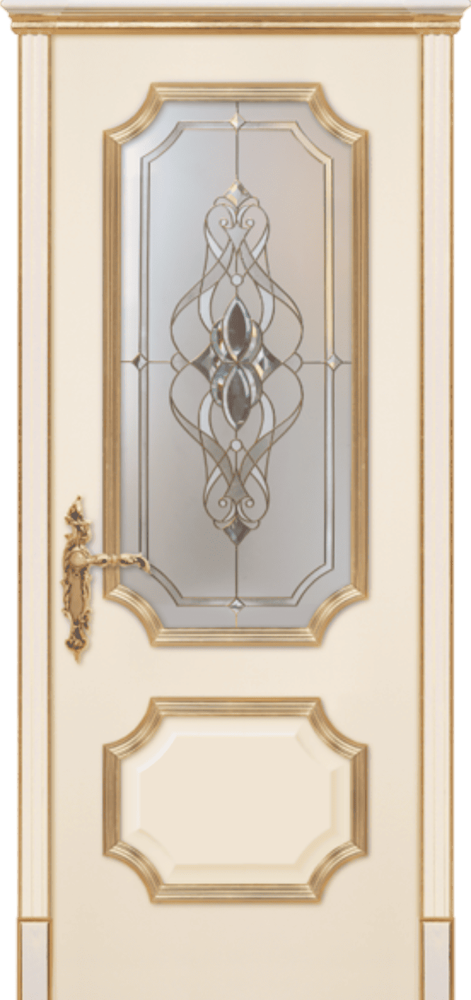 Купить дверь Неаполь Эмаль слоновая кость, патина «Золото», витраж «Венеция» из Эмали в Москве и Московской области