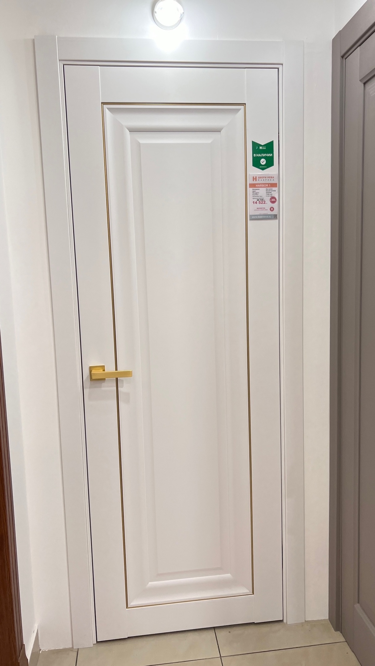 Купить дверь ПГ Harbor 1F Emlayer Белый молдинг золото из Экошпона COVERFLEX в Москве и Московской области