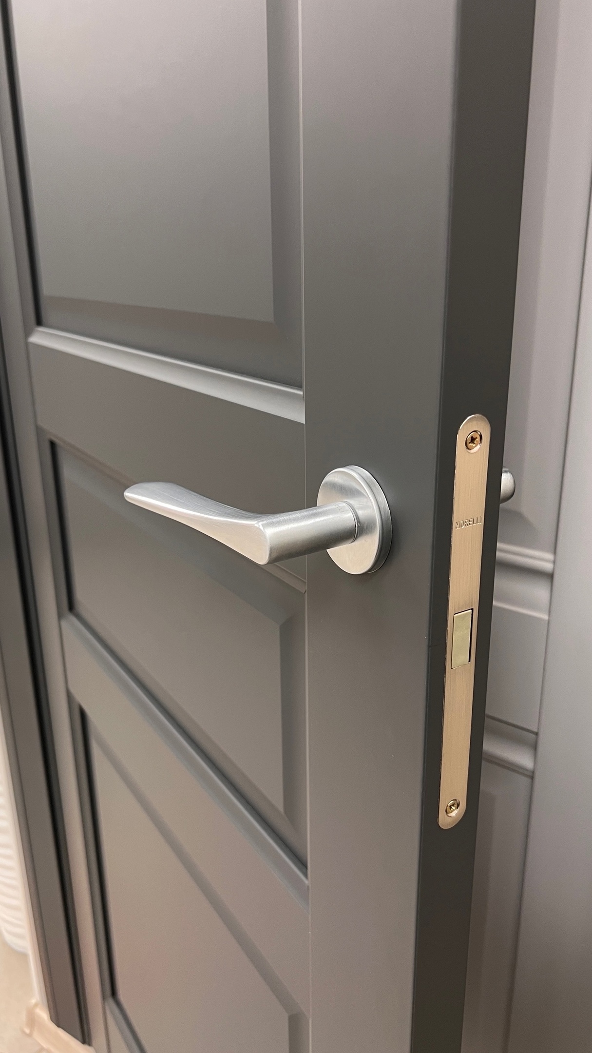 Кроме того производится врезка под скрытые петли. Такая опция помогает избежать лишних пыльных работ на адресе и сокращает время работы на монтаже. По возможности врезки в конкретную модель уточняйте у менеджеров.